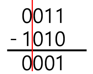 ② 이진수의 뺄셈은 덧셈을 모방한다. 부호비트가 다른 덧셈은 이 경우에 해당한다.