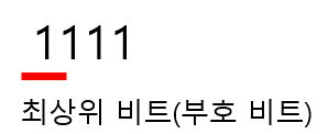 ② 제일 왼쪽에 있는 최상위 비트가 부호를 나타내도록 설정하는 것이 부호비트이다.