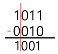 (b) 절댓값끼리 먼저 계산하면 011 - 010 = 001이다. 부호비트의 계산은 1 - 0이 되는데, -0은 양수에 마이너스 부호를 붙인 것으로 음수인 1과 같다. 따라서 1 - 0 = 1 - (-1) = 1 + 1= 1이 되므로 1001이 된다.