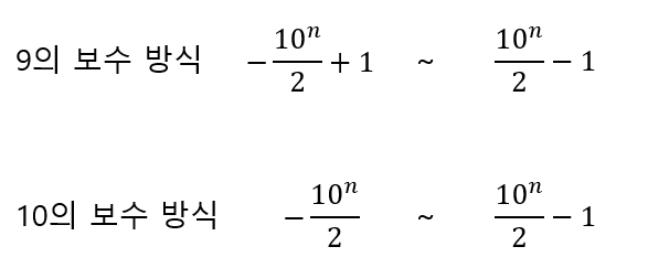 ㉠ 이 때 특정 값은 9의 보수 방식일 때는 10^n-1, 10의 보수 방식일 때는 10^n이다.(n은 자릿수이다.)