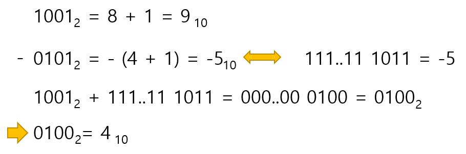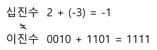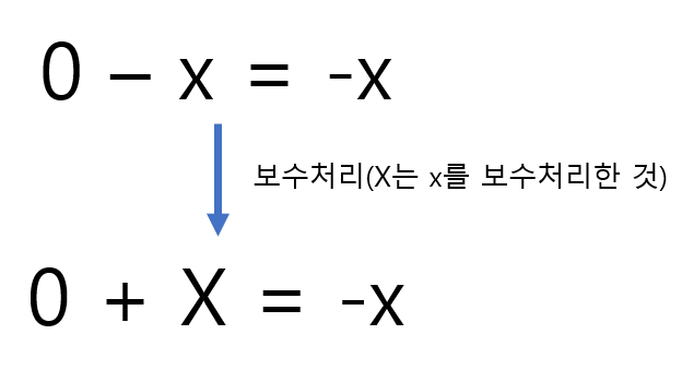 ② 보수처리한 수를 0에 더하면, 보수처리하기 전의 수의 음수와 같다.