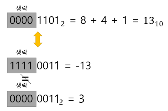 ⓐ 4비트일 때는 -8~7까지만 나타낼 수 있다고 제한했으나, 현재는 나타낼 수 있는 수의 범위 제한이 없다.