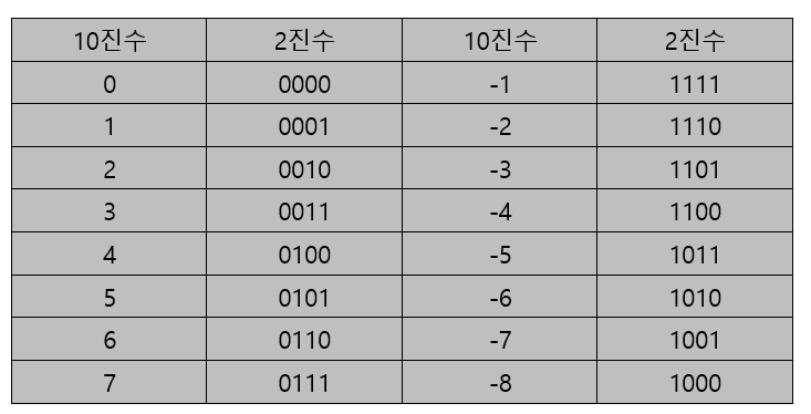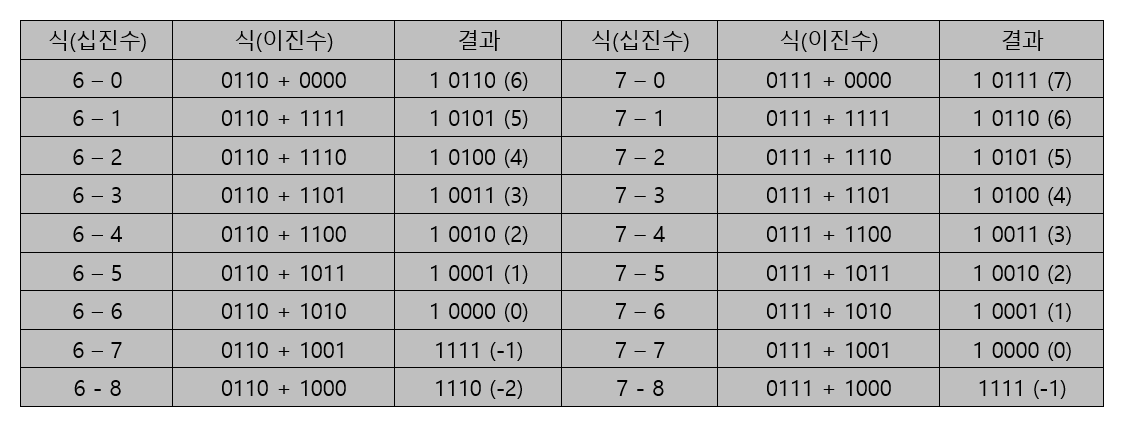 ⑦ 부호화 절댓값과는 다르게 a - b를 a + (-b)로 계산하기 때문에 가산기(덧셈기)로만 계산하는 것이 가능하다.