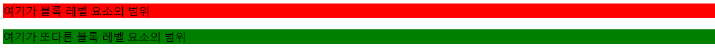 <p style ="background-color: green">여기가 또다른 블록 레벨 요소의 범위</p>